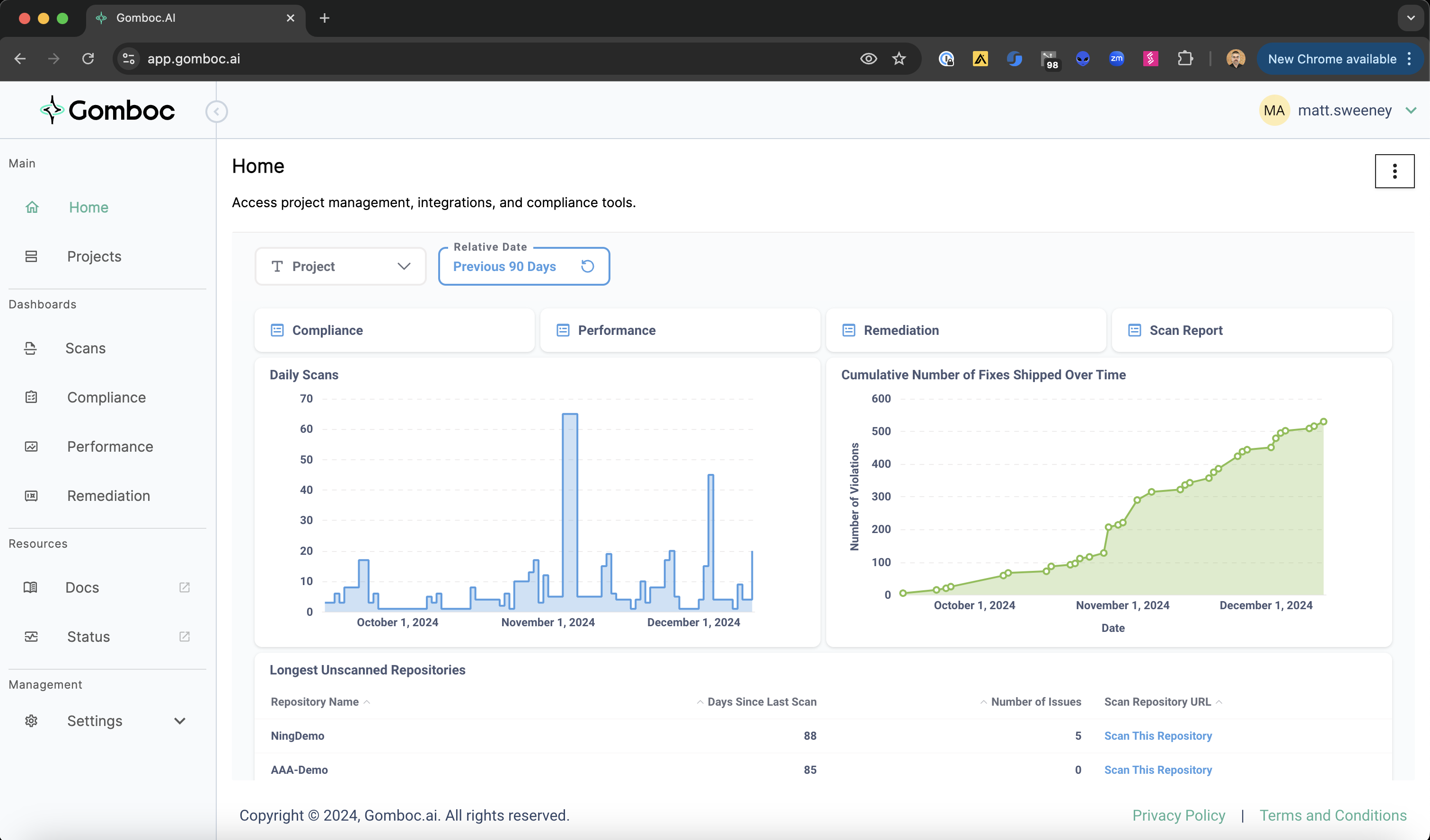 On your first login to Gomboc, you may encounter an issue where the dashboard content is blocked, as seen below.